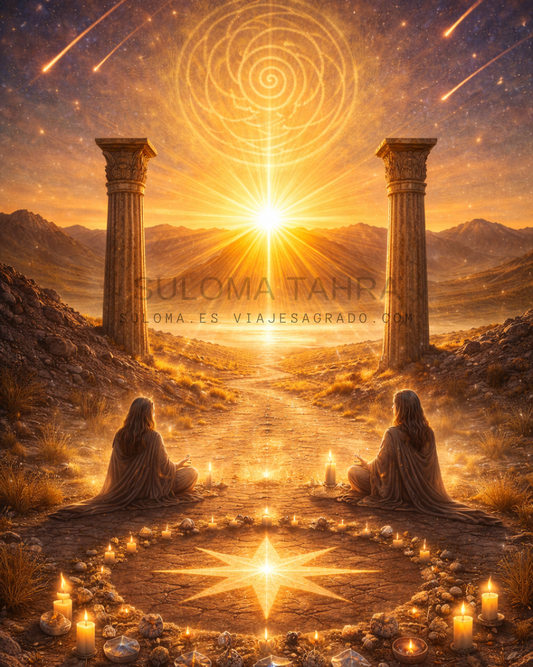 Viaje Sagrado es una llamada a los corazones despiertos. Acompañamos a quienes se encuentran en cruce de caminos internos y desean alinear su destino con su alma. Como Enodia y Dihya abren senda, como Isis transforma y Magdala purifica, Suloma sostiene el portal.