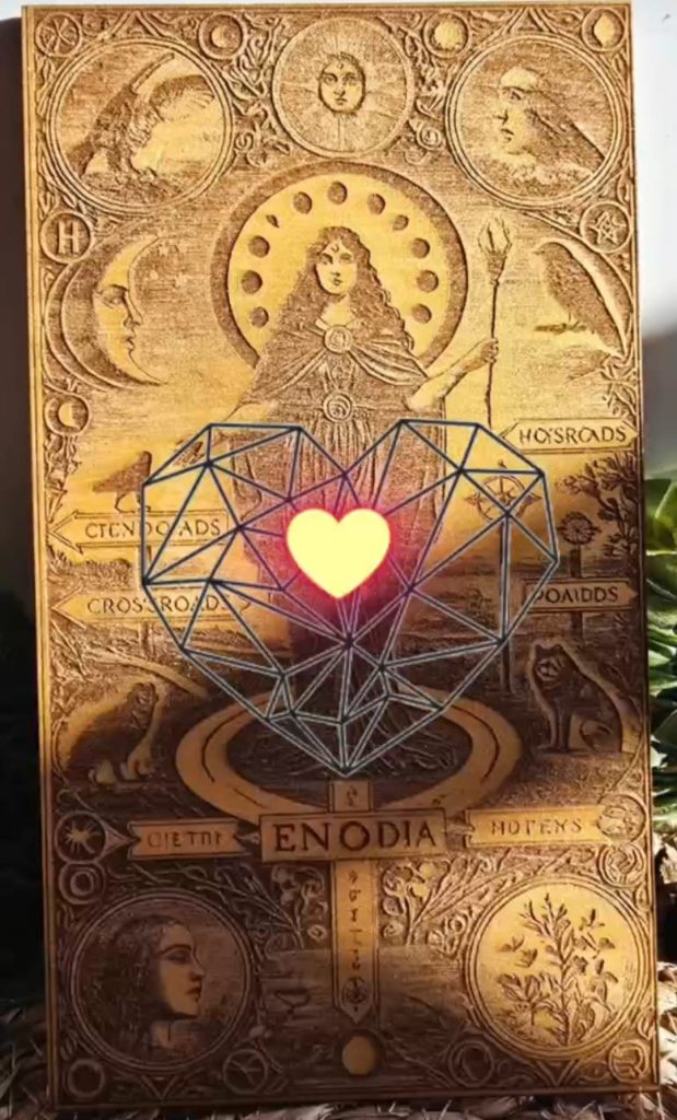 Enodia apareció para custodiar este umbral sagrado. Su presencia no fue casual: marca el cruce, la ruptura con lo viejo y la apertura al verdadero camino del alma. Un llamado a tomar dirección interna con conciencia.