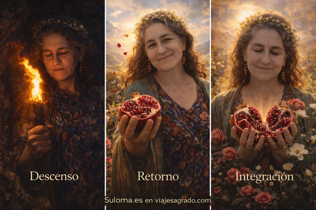 La granada, en el mito de Perséfone, no es solo un fruto: es el instante en que el alma deja de huir de sí misma.